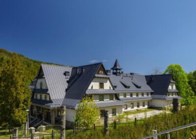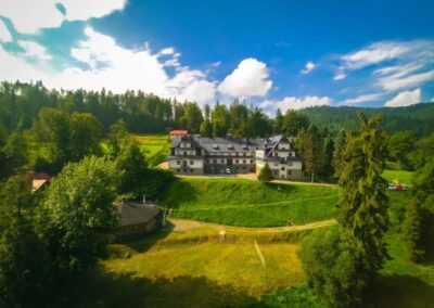 Obiekt hotelowy położony w Wiśle – nieustannie najpopularniejszej miejscowości turystycznej Beskidu Śląskiego. Usytuowany w dzielnicy Malinka, tuż obok słynnej Skoczni Narciarskiej im. Adama Małysza. Posiada duży, ogrodzony teren rekreacyjny z boiskiem sportowym, chatą grillową i kręgiem ogniskowym. W budynku znajduje kompleks sal warsztatowych i pracowni artystycznych, jadalnia, całodobowa recepcja, ogólnodostępne Wi-Fi, bezpłatny parking. Zakwaterowanie w klasycznych pokojach 2, 3- i 4-osobowych z łazienkami oraz z widokiem na góry.