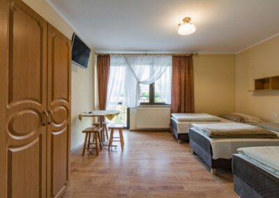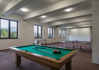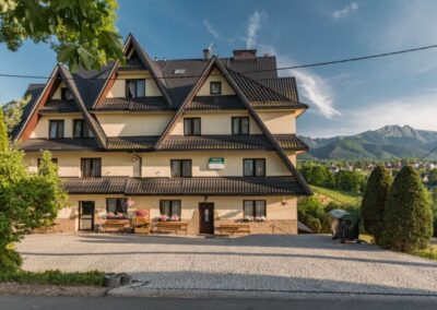 Przytulne pokoje 2-, 3-, 4- i 5-osobowe z łazienkami i TV, większość z balkonami z widokiem na Tatry. Domowe, smaczne wyżywienie przygotowywane na miejscu. Do dyspozycji Uczestników kilka salek rekreacyjnych, ocieplany góralski szałas, jadalnia, dwie sale taneczne z lustrami, teren wokół obiektu, parking.