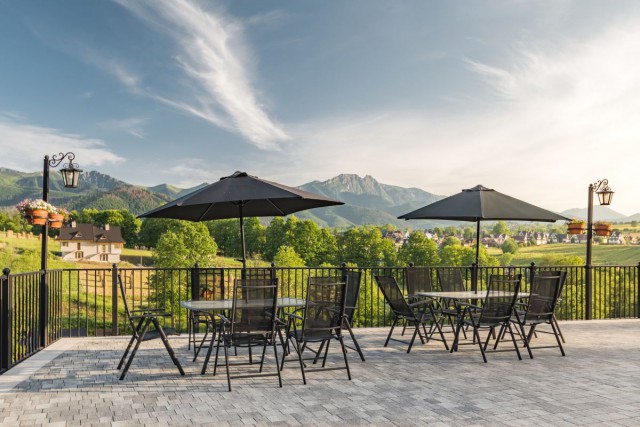 Przytulne pokoje 2-, 3-, 4- i 5-osobowe z łazienkami i TV, większość z balkonami z widokiem na Tatry. Domowe, smaczne wyżywienie przygotowywane na miejscu. Do dyspozycji Uczestników kilka salek rekreacyjnych, ocieplany góralski szałas, jadalnia, dwie sale taneczne z lustrami, teren wokół obiektu, parking.
